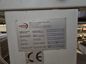Tunnel de séchage MPS 45 avec UV. Ce tunnel est idéal pour la polymérisation des peintures UV par pulvérisation avant le passage sous les lampes. Il s'agit d'un tunnel CEFLA. Ce tunnel de pré-polymérisation est composé d'un flux d'air chaud laminaire. Il est équipé de ventilateurs d'insufflation pour la circulation de l'air, de ventilateurs d'extraction pour l'élimination des solvants, de  groupes de lampes TL, de  lampes UV ( pour les peintures transparentes et  pour les peintures pigmentées), d'échangeurs de chaleur air avec régulation de température,