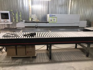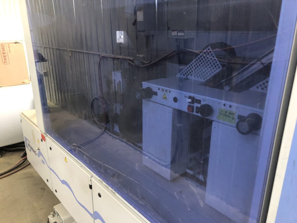 Cette machine est extrêmement simple dans ses options et est LA SOLUTION PARFAITE pour les ébénistes qui font de la production en série de meubles-lavabos et de cuisines qui ne doivent nécessairement qu'une bande de chant de 0,5 mm. La machine est équipée d'une unité de pré-fraisage et d'un convoyeur de retour Doucet.