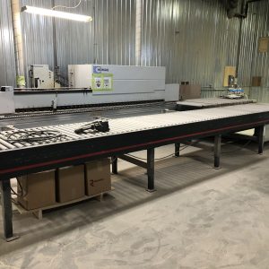 Cette machine est extrêmement simple dans ses options et est LA SOLUTION PARFAITE pour les ébénistes qui font de la production en série de meubles-lavabos et de cuisines qui ne doivent nécessairement qu'une bande de chant de 0,5 mm. La machine est équipée d'une unité de pré-fraisage et d'un convoyeur de retour Doucet.