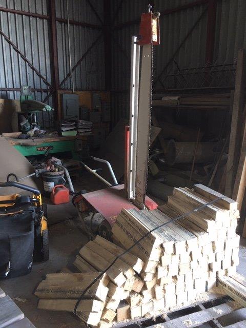 Tronconneuse à paquet avec convoyeurs d’entrée et de sortie. Capacité: 50″ de large 550 volts (30 amp)